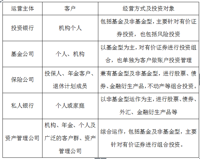 受托資産管理(lǐ)是(shì)指專業(yè)的(de)金(jīn)融服務機(jī)構作(zuò)為(wèi)受托投資管理(lǐ)人(rén),借助自(zì)身(shēn)在人(rén)才、技(jì)術(shù)和(hé)信息等方面的(de)專業(yè)優勢≠,将委托人(rén)所委托的(de)資産進行(xíng)組合投資,從(cóng)而實現(xiàn)委托資産收益最大(dà)化(huà),資産所有(yǒu)者和(hé)管理(lǐ)者之間"(jiān)的(de)法律關系為(wèi)信托關系。資産管理(lǐ)的(de)資金(jīn)來(lái)源一(yī)般有(yǒu)三個(gè)渠道(dào):機(jī)構、企業(yè)和(hé)個(gè)人(rén),他(tā)們是(shì)資産管理(lǐ)行(xíng)業(yè)的(de)客戶。其中,α機(jī)構客戶包括了(le)政府和(hé)保險基金(jīn)、慈善基金(jīn)、養老(lǎo)基金(jīn)等各類基金(j♥īn)。